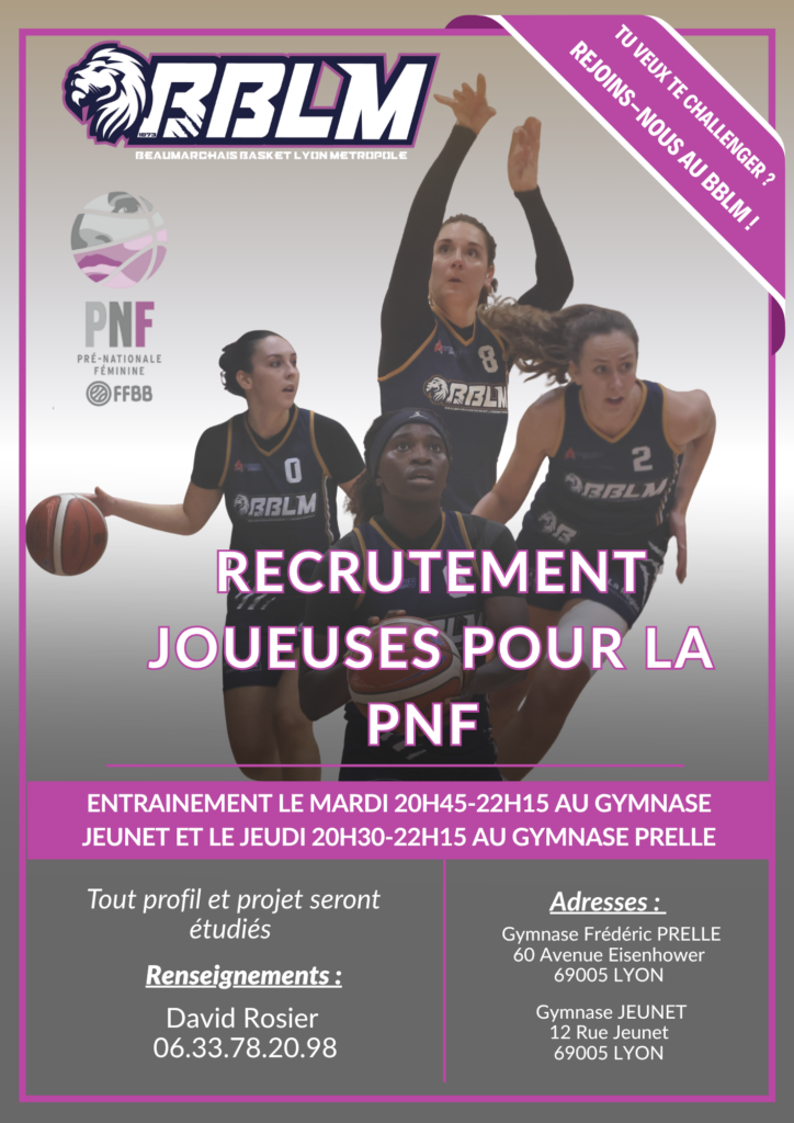 PNF : mardi de 20h45 à 22h15 au gymnase Jeunet et jeudi de 20h30 à 22h15 au gymnase Prelle