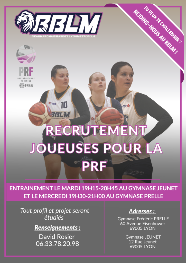 PRF : mardi de 19h15 à 20h45 au gymnase Jeunet et mercredi de 19h30 à 21h au gymnase Prelle